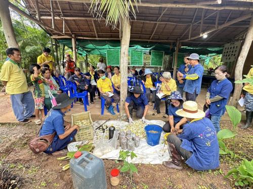 ความสำเร็จของการขยายผลการน้อมนำหลักปรัชญาของเศรษฐกิจพอเพียง สู่ครัวเรือนโดยรอบศูนย์เรียนรู้การพัฒนาคุณภาพชีวิตตามหลักทฤษฎีใหม่ ประยุกต์สู่ “โคก หนอง นา” โดยศูนย์เรียนรู้ทฤษฎีใหม่รูปแบบ “โคก หนอง นา” บ้านขัวสูงสวรรค์ หมู่ 13 ตำบลศรีวิชัยอำเภอวานรนิวาส จังหวัดสกลนคร กิจกรรมเอามื้อสามัคคี การปลูกป่า 5 ระดับ การห่มดินได้กินเห็ด การทำปุ๋ยมักชีวภาพ ส่งเสริมการปลูกผักสวนครัว สู่ครัวเรือนโดยรอบศูนย์เรียนรู้ทฤษฎีใหม่รูปแบบ “โคก หนอง นา”จำนวน 30 ครัวเรือน เพื่อขยายผลการน้อมนำหลักปรัชญาของเศรษฐกิจพอเพียง สู่ครัวเรือนโดยรอบศูนย์เรียนรู้การพัฒนาคุณภาพชีวิตตามหลักทฤษฎีใหม่ ประยุกต์สู่ “โคก หนอง นา” และการสร้างความมั่นคงทางอาหารแก่ครัวเรือนรอบศูนย์เรียนรู้