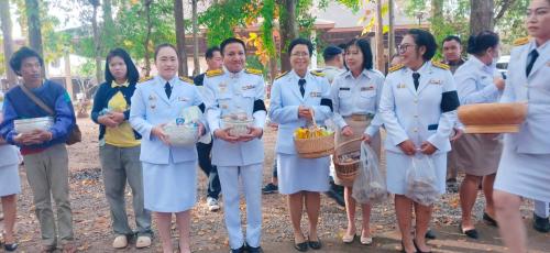 เวลา 07:30 น. พิธีเจริญพระพุทธมนต์และพิธีทำบุญตักบาตร ถวายพระราชกุศล